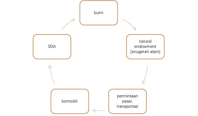 Proses alam menjadi SDA. (Sumber: diolah dari hasil pembacaan buku A History of Natural Resources in Asia: The Wealth of Nature, 2007)