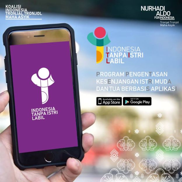 Red letters spell ‘clitoris’. Full poster reads, ‘Indonesia without unstable wives – app-based program to overcome inequality between first and subsequent wives.’