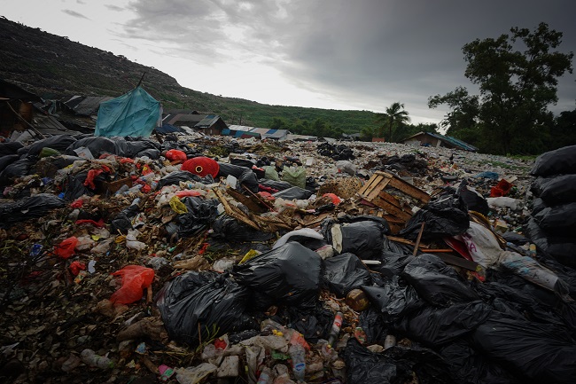 I travelled up 42 floors of Jakarta’s World Trade Centre to hear Resa speak at an event hosted by the professional woman’s group from the British Chamber of Commerce Indonesia. Guests enjoyed mini-quiches from pristine white plates as they waited for Resa’s presentation. The rubbish dump appeared to leak from the flat-screen televisions around the room. Standing five foot tall in front of an audience of diplomats and journalists Resa said, ‘If you send your waste to Bantar Gabang, come here and help us clean it’.