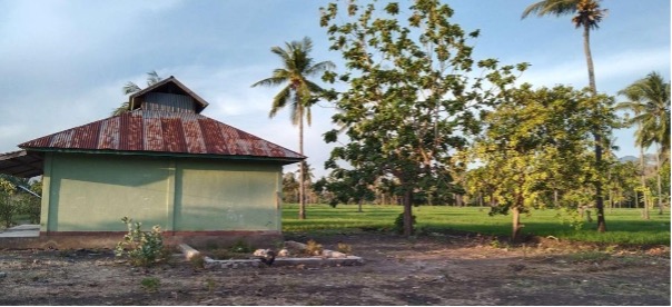 The company’s rice field border, surrounded by bare coconut trees, is located near a public school and a local settlement / Author