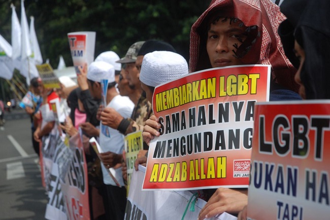 This time the rhetoric reached moral panic proportions. Just about every politician, as well as many religious leaders, issued statements condemning LGBT communities. The minister of defence accused these communities of waging ‘war by proxy’ and threatening the nation’s sovereignty and various members of parliament said that the LGBT presence in Indonesia was symptomatic of undesirable foreign intervention and westernisation. The UNDP and USAID-initiated program ‘Being LGBT in Asia’ was singled out as a foreign attempt to interfere with social affairs, and was even criticised by the vice president, and was eventually forced to cease operations. Government agencies such as Bappenas (the Ministry of National Development Planning) placed international funding agencies under close scrutiny and explicitly told them not to support LGBT organisations.